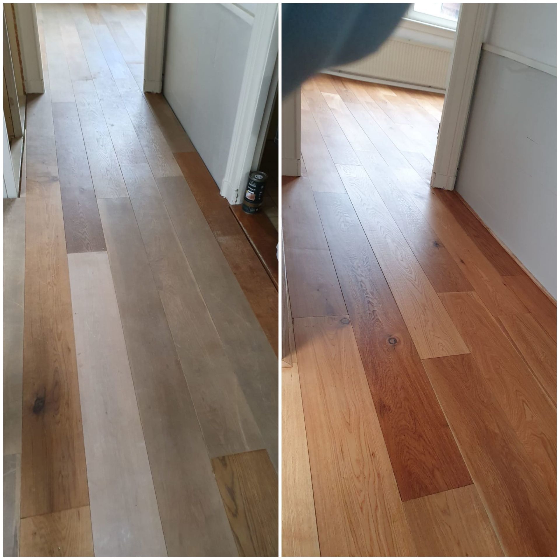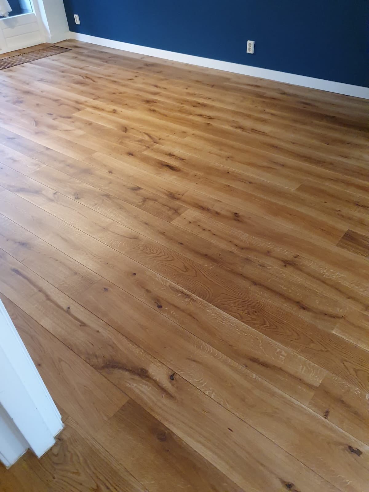 Eiken vloer gepolijst en in de onderhoudsolie gezet.