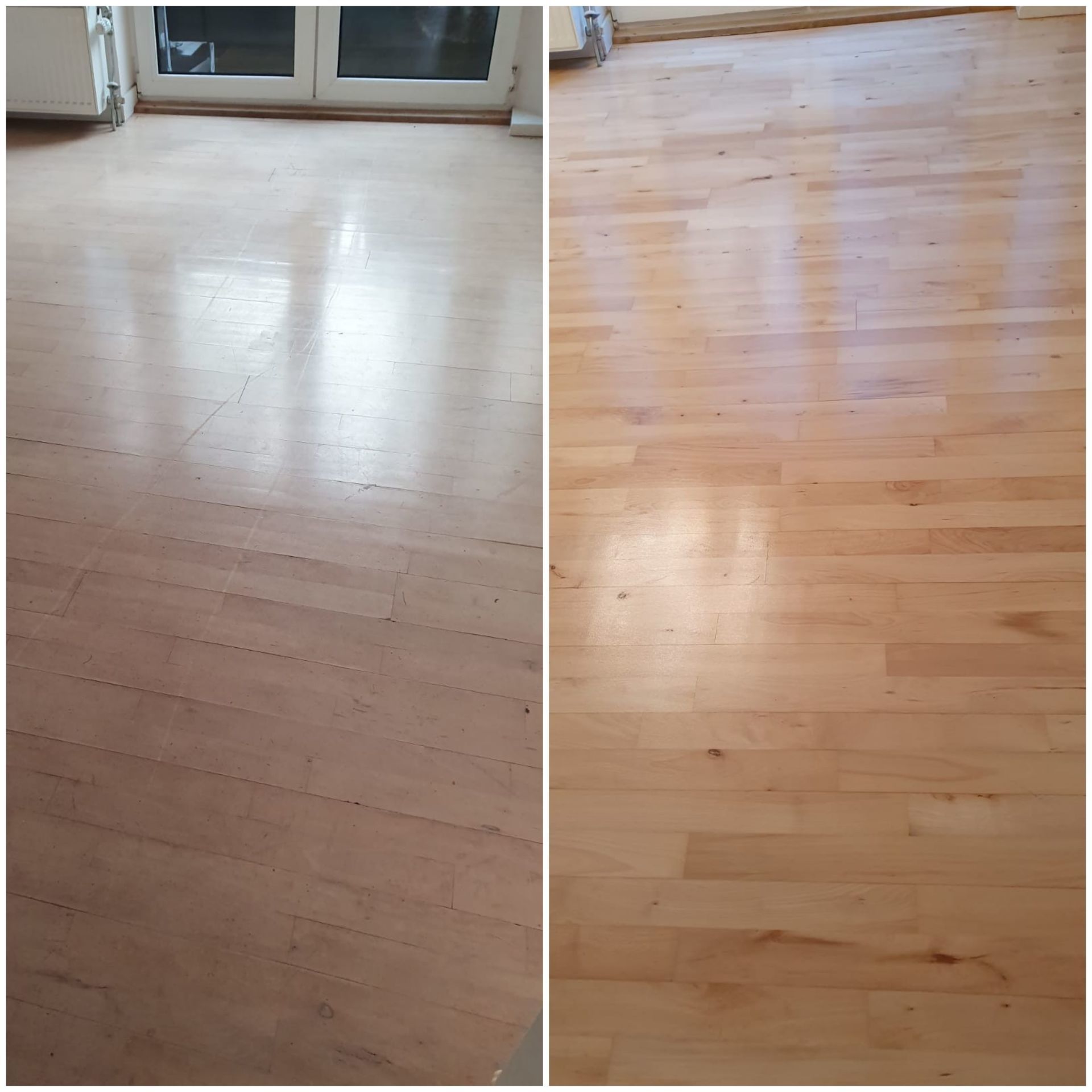 Mooie Beuken vloer geschuurd en in de transparante lak gezet.
