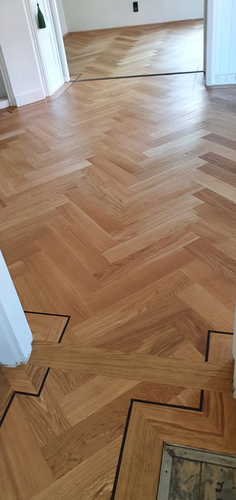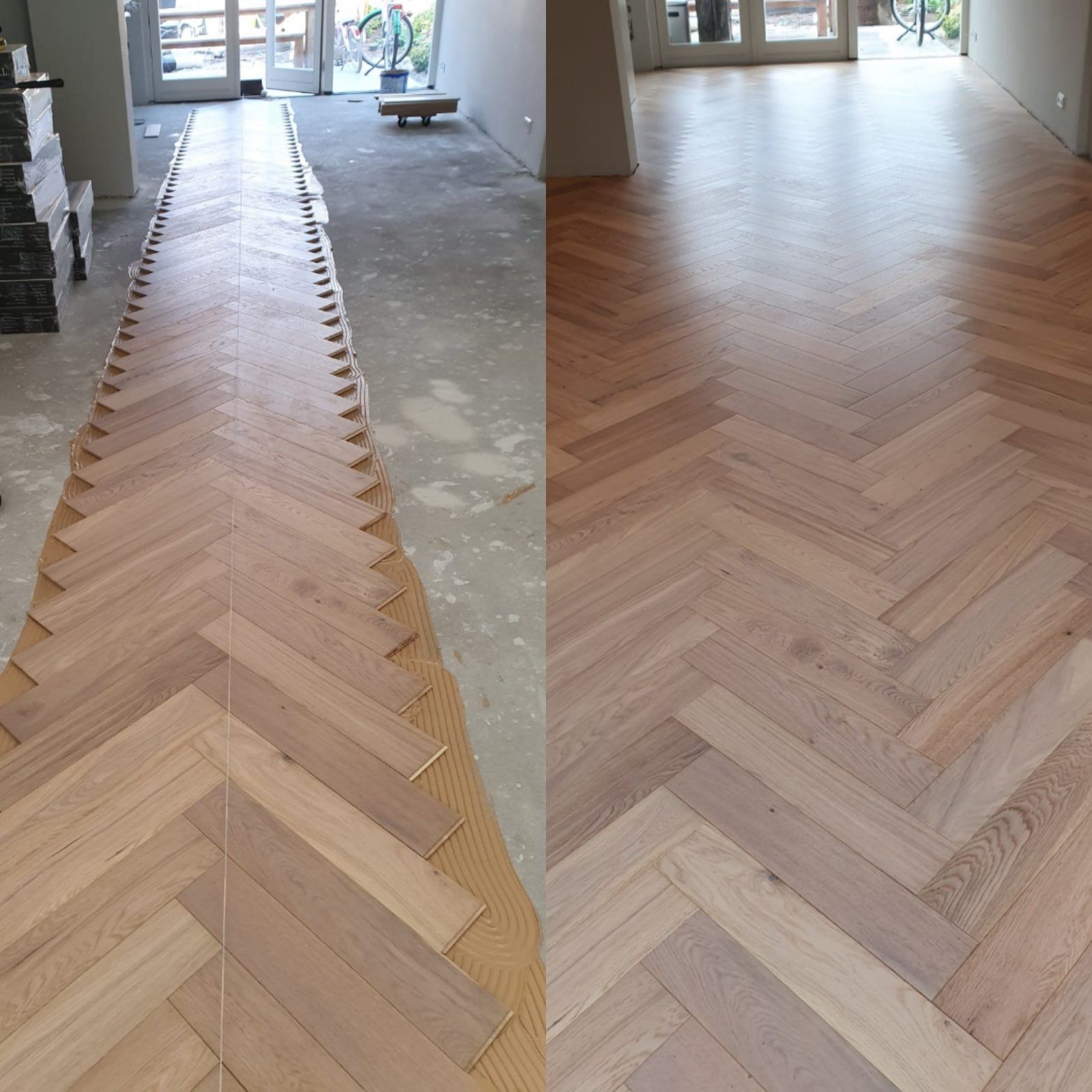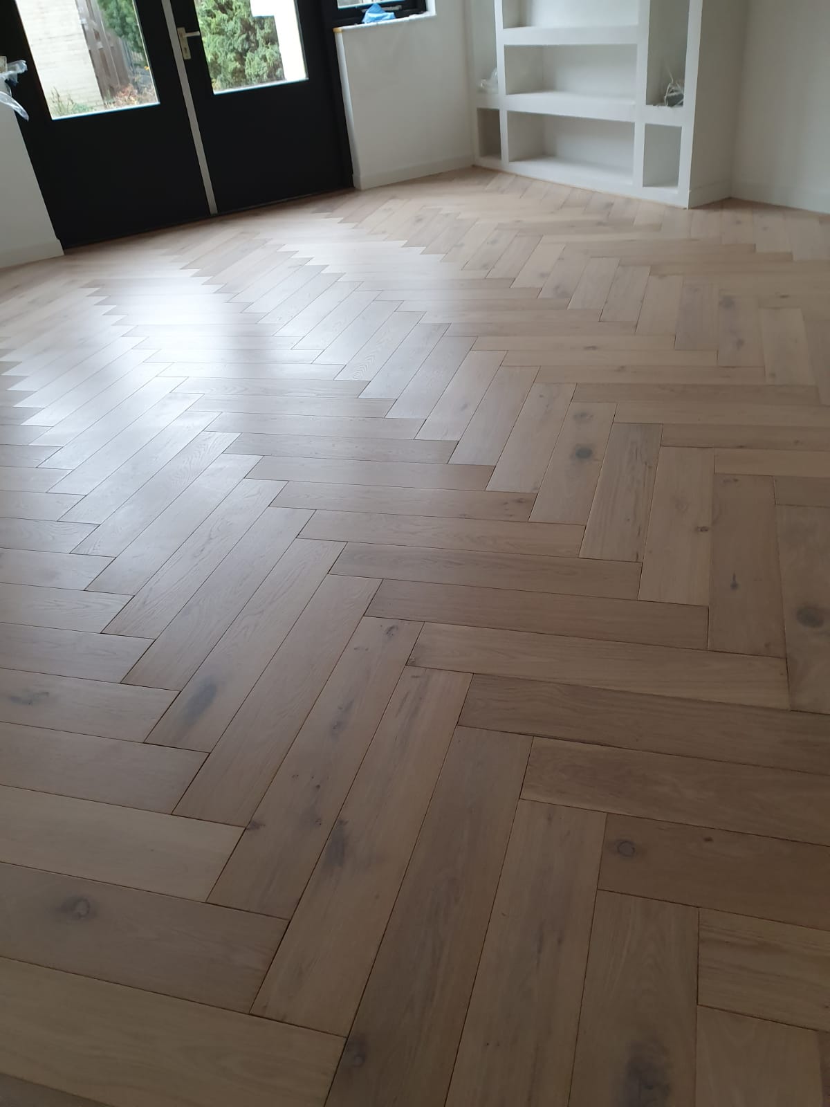 Semi-Tapi visgraat vloer gelegd en afgewerkt met transparante onderhoudsolie.