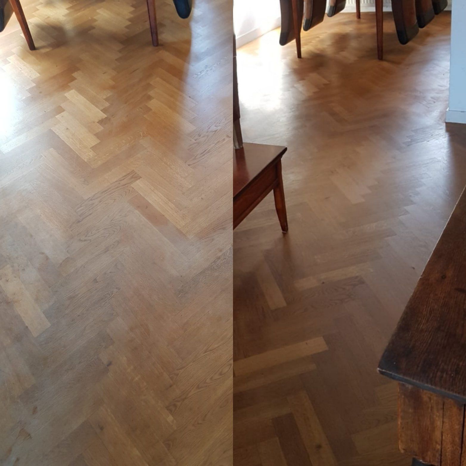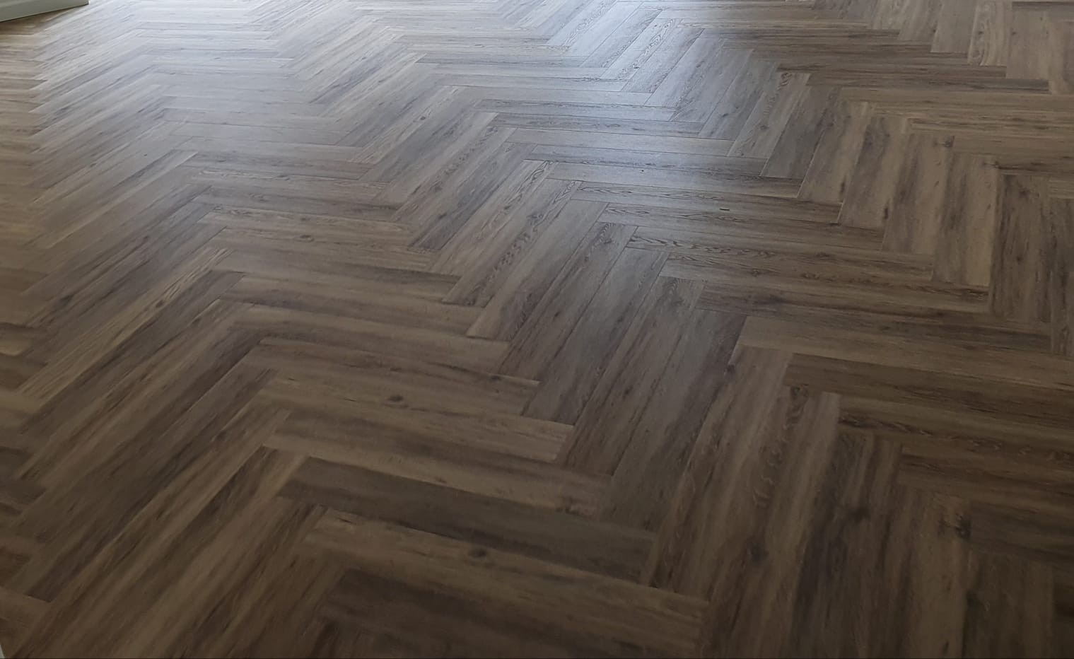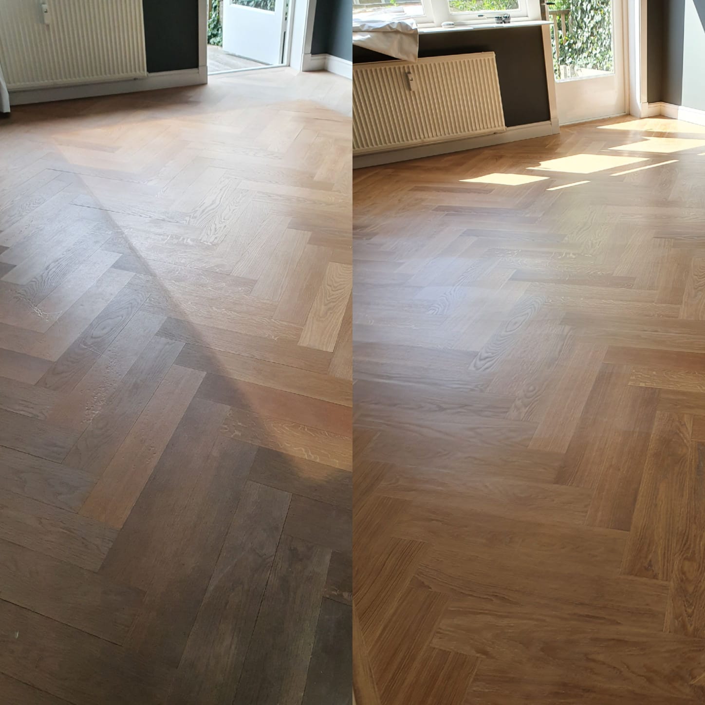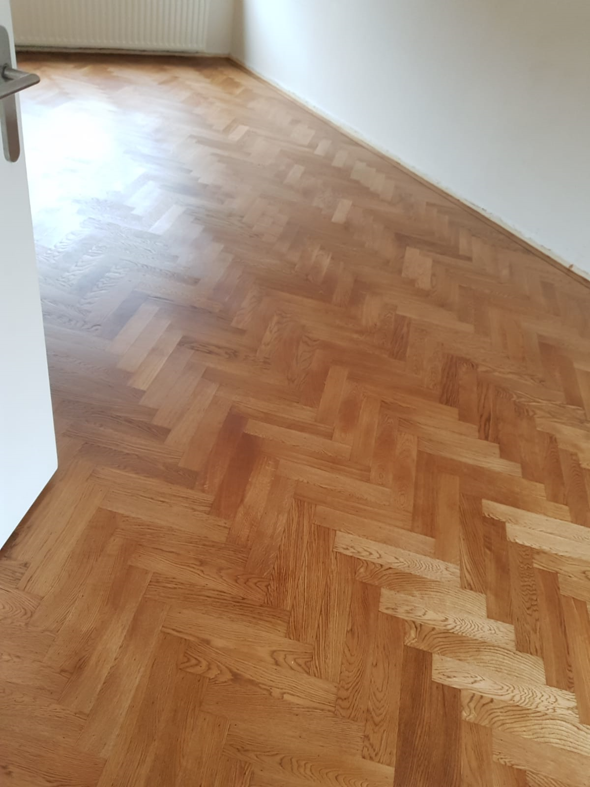 Semi-Tapi visgraat vloer gelegd en afgewerkt met transparante onderhoudsolie.